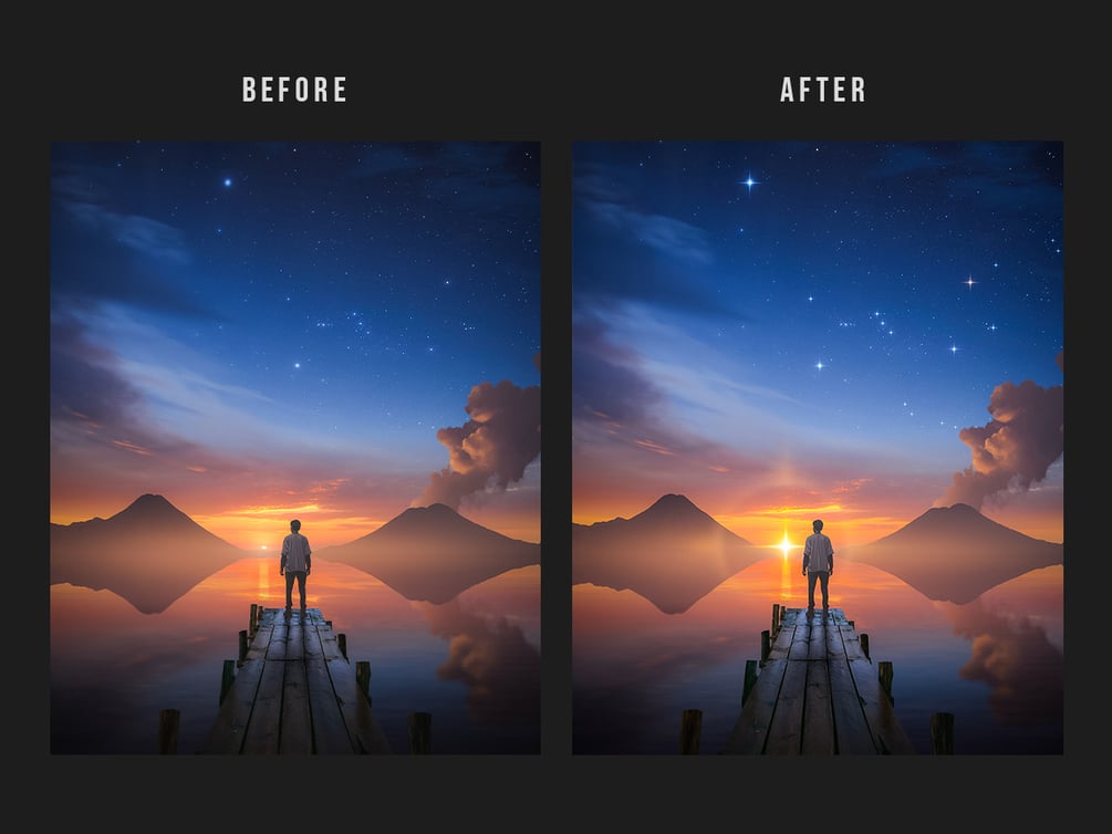 20 lights overlays to take the lighting in your photos to the next level. Including sun rays, glow effects, soft lights, starlights, and more.